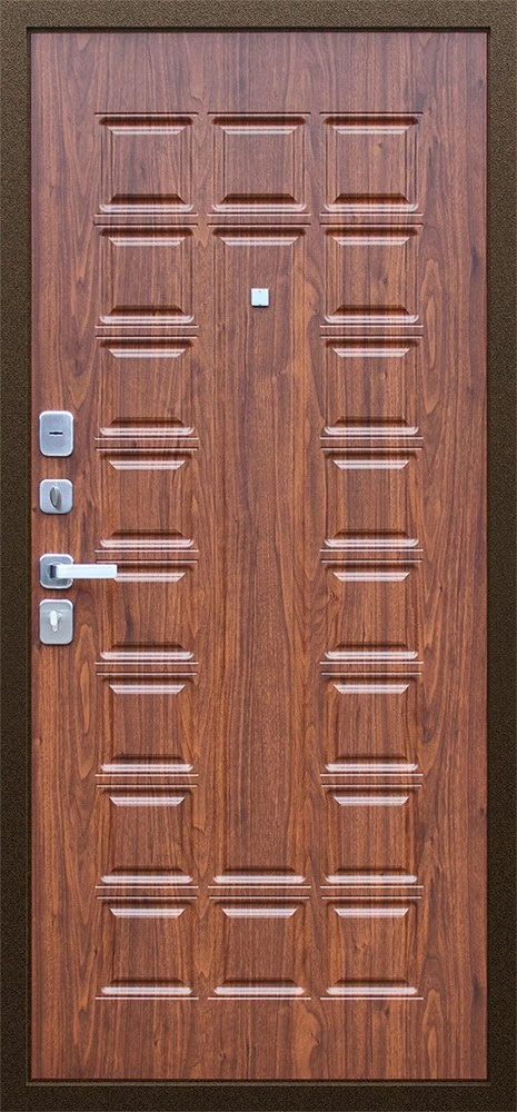 Надежная входная Дверь Спартак Орех темный премиум класса по цене 36 500 руб. Большая толщина стали защитит от проникновения в ваш дом, квартиру или коттедж. Используется очень качественная фурнитура: замки, цилиндры, ручки, защелки. Покрытие и отделка двери изготовлено под внимательным контролем производителя. Дверь имеет долгий срок службы и гарантию.